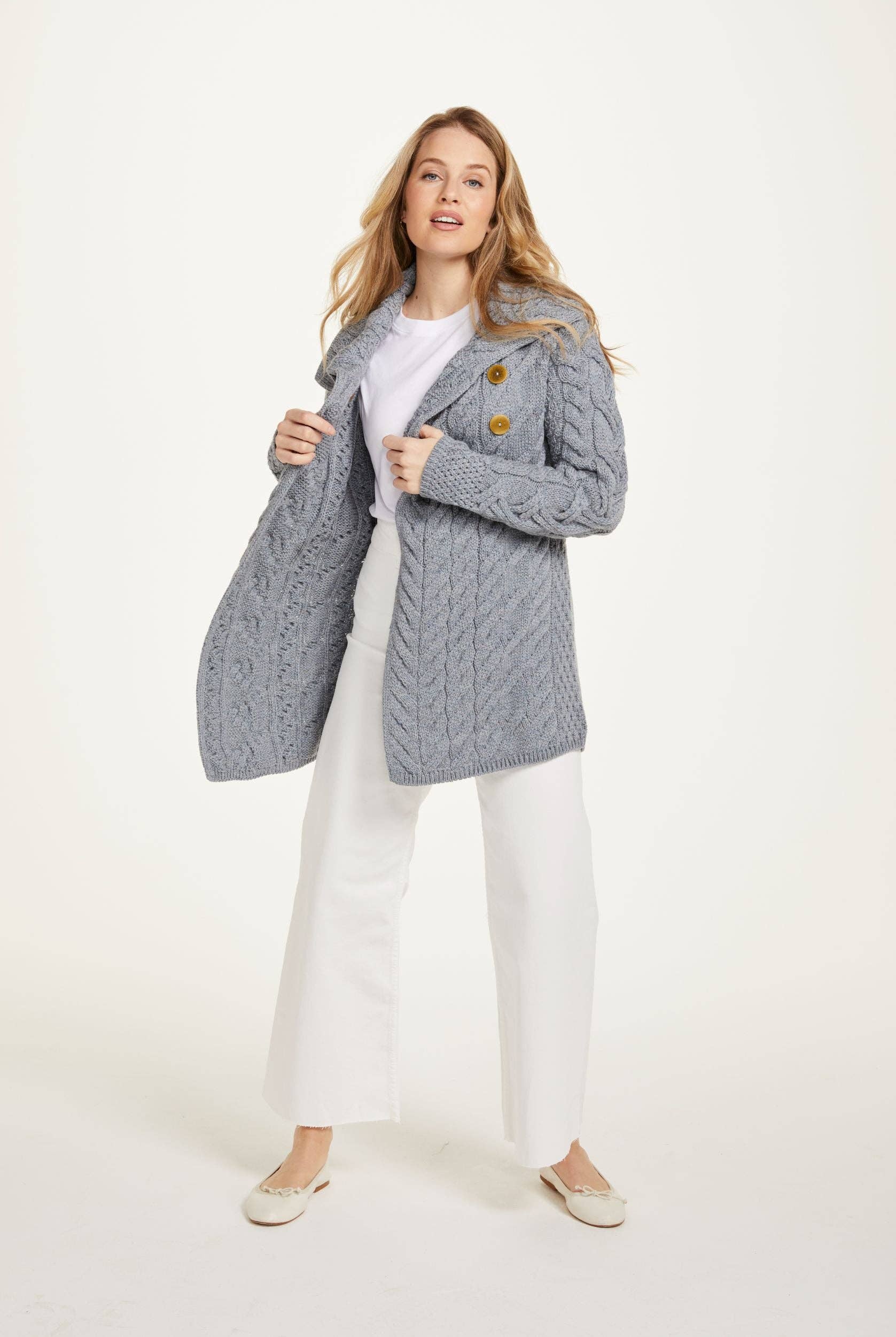 The Carraig Aran Cardigan has been crafted with the modern woman in mind. Carrying the comfort, undeniable softness and cosy warmth of Supersoft Merino wool, this piece was made for adventuring in the magic of the outdoors.
