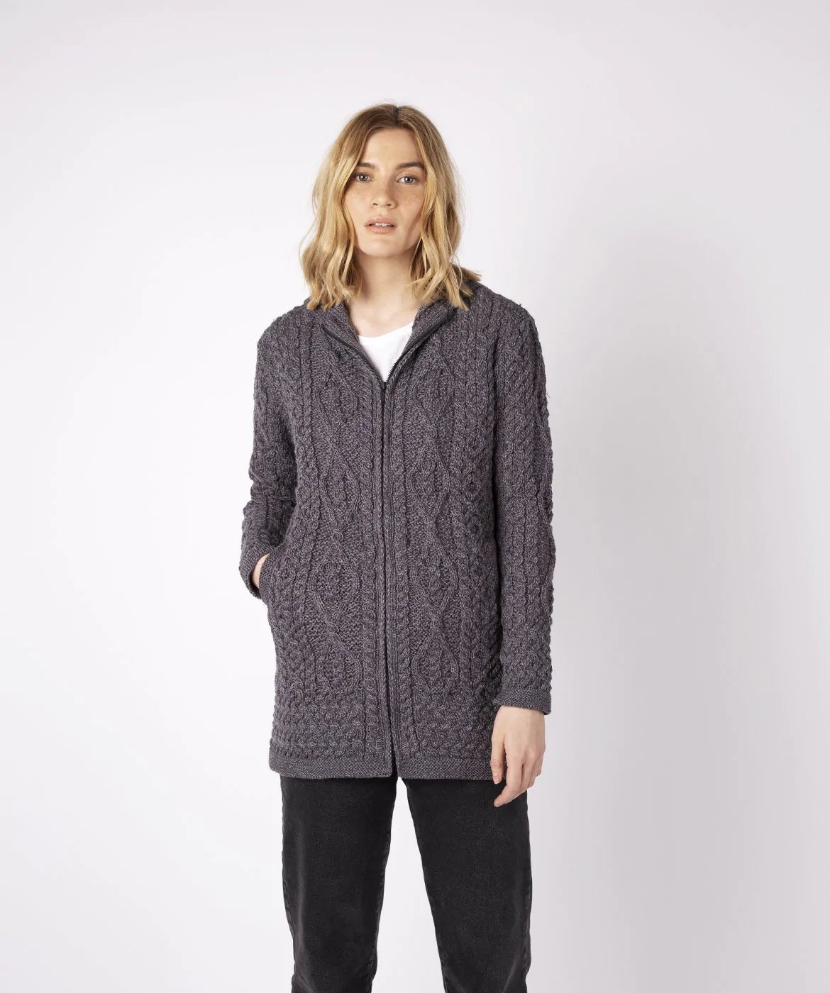 Inspired by the wild Irish landscape, the Hazel Aran hooded coat is crafted in the traditional Irish style by a family owned business since 1968. Carefully crafted with merino wool, the Hazel is made to be soft to the touch yet warm and durable.