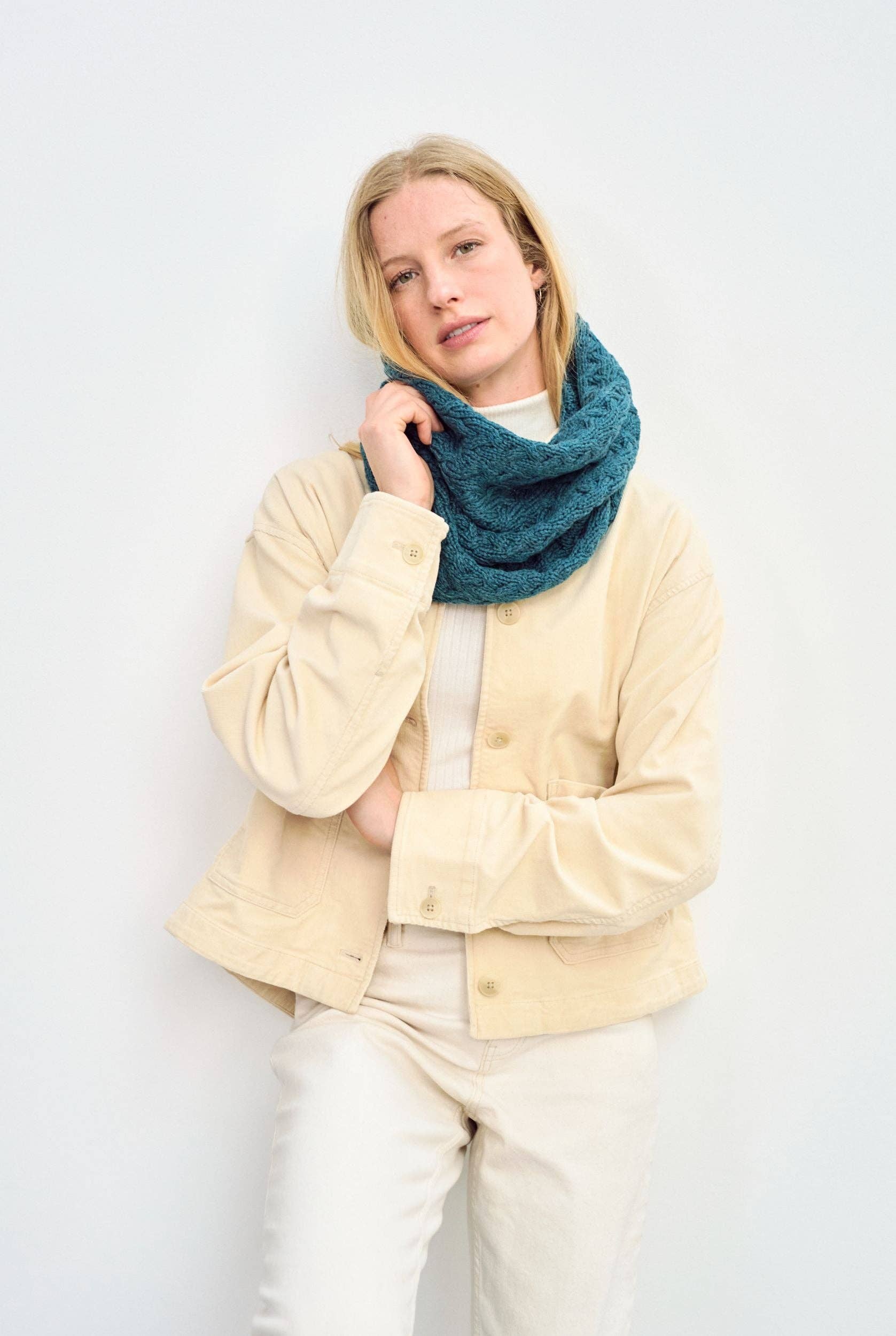 We believe that every snood should be incredibly soft, durable and warming in nature. Therefore, the Newport Aran Cable Snood is made with our Supersoft Merino wool, for a soft, cosy feel.