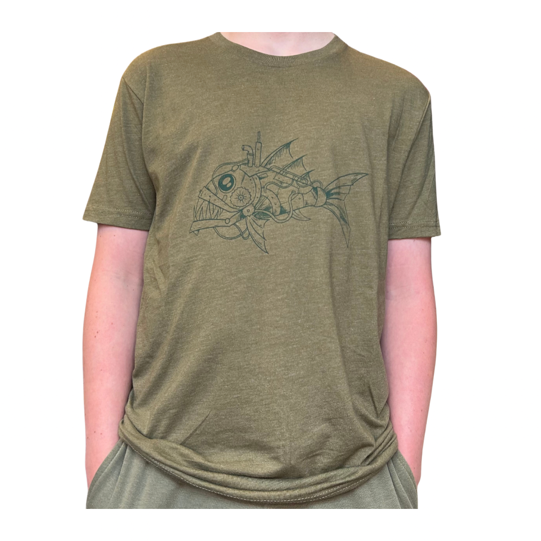 With its vintage soft feel and edgy print, Steampunk Fish will soon become your new favourite tee! Hand screen printed locally with eco friendly inks.