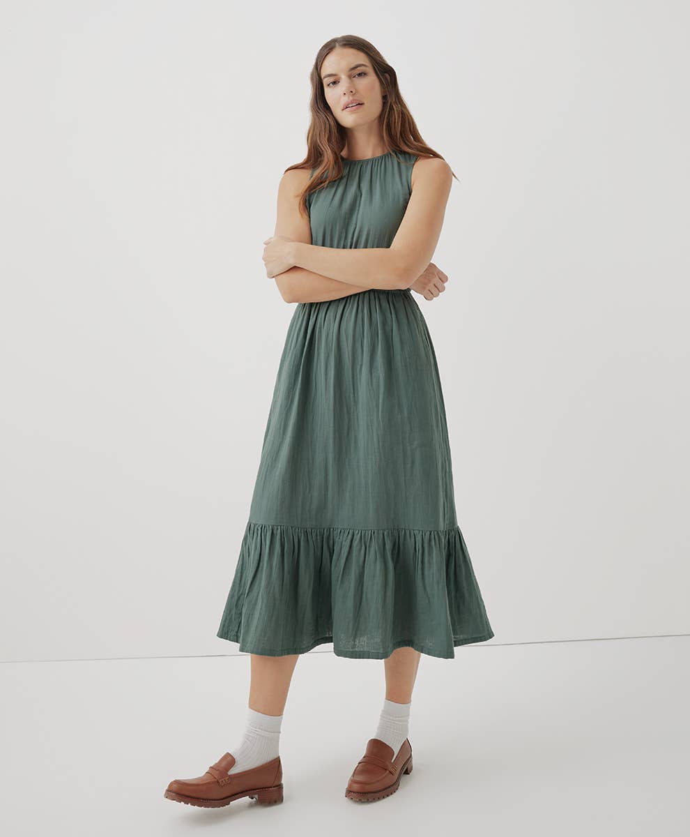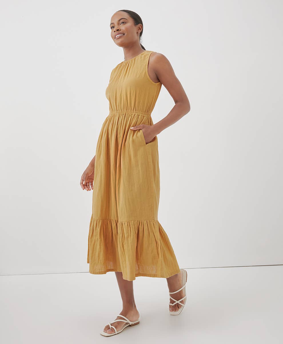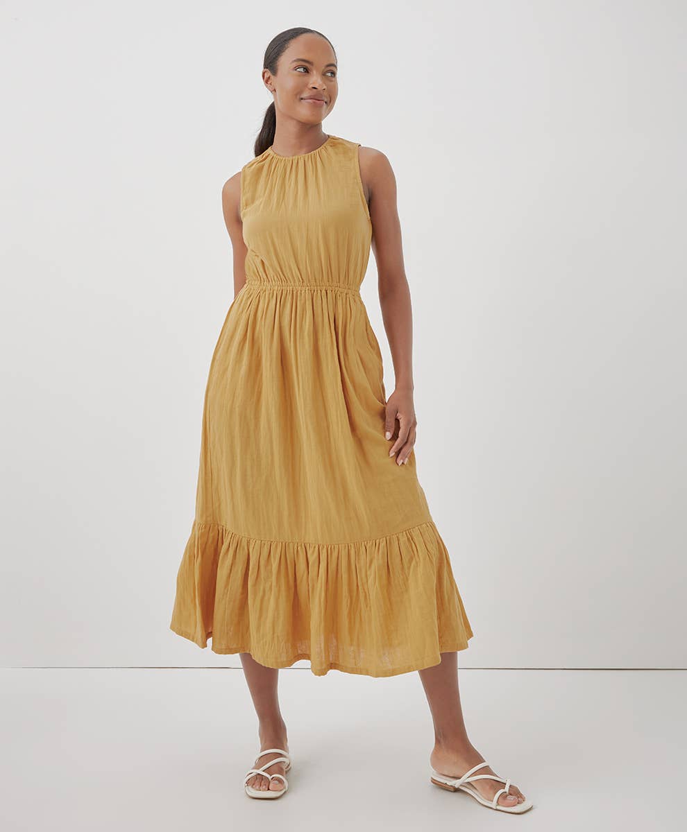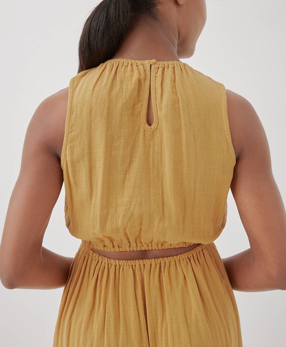 The first thing we throw in our bag for any beach getaway. It's breezy, easy to dress up or down, and flirty from front to peek-a-boo back. Woven, double-gauze fabric creates a flowy silhouette.