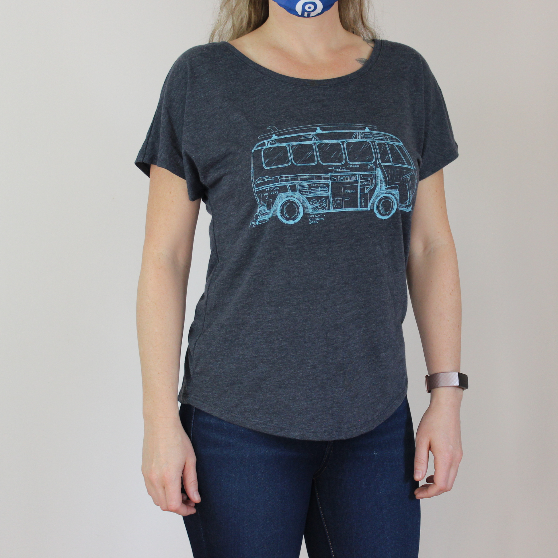 A '60s-style VW Bus radiate laughs on this extra-soft, lightweight tee. Relaxed fit for maximum chill vibes. Eco-friendly inks and Octopus Studio printing ensures a quality product. All hail the retro bus design!